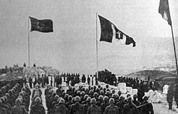 Η Γερμανική σημαία κυματίζει στην Ακρόπολη, δύο φοιτητές ο Αποστόλης Σάντας κι ο Μανώλης Γλέζος την γκρεμίζουν από